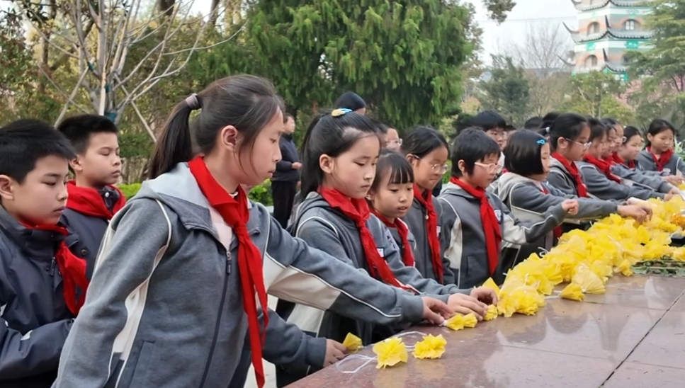 4月1日,崇明区精神文明办、区新时代文明实践中心、区退役军人局、区教育局、区民政局等多部门联合在新河镇崇明烈士纪念馆举办“清明祭英烈·文明寄哀思·绿色树新风”——“我们的节日·清明”主题活动。现役军人、退役军人、中小学生及群众代表齐聚,以庄重的祭扫仪式向革命烈士敬献花篮、瞻仰纪念碑,缅怀英烈丰功伟绩。学生们亲手制作小黄花敬献英烈,并走进纪念馆聆听革命历史、擦拭烈士墙,在沉浸式体验中传承红色基因。