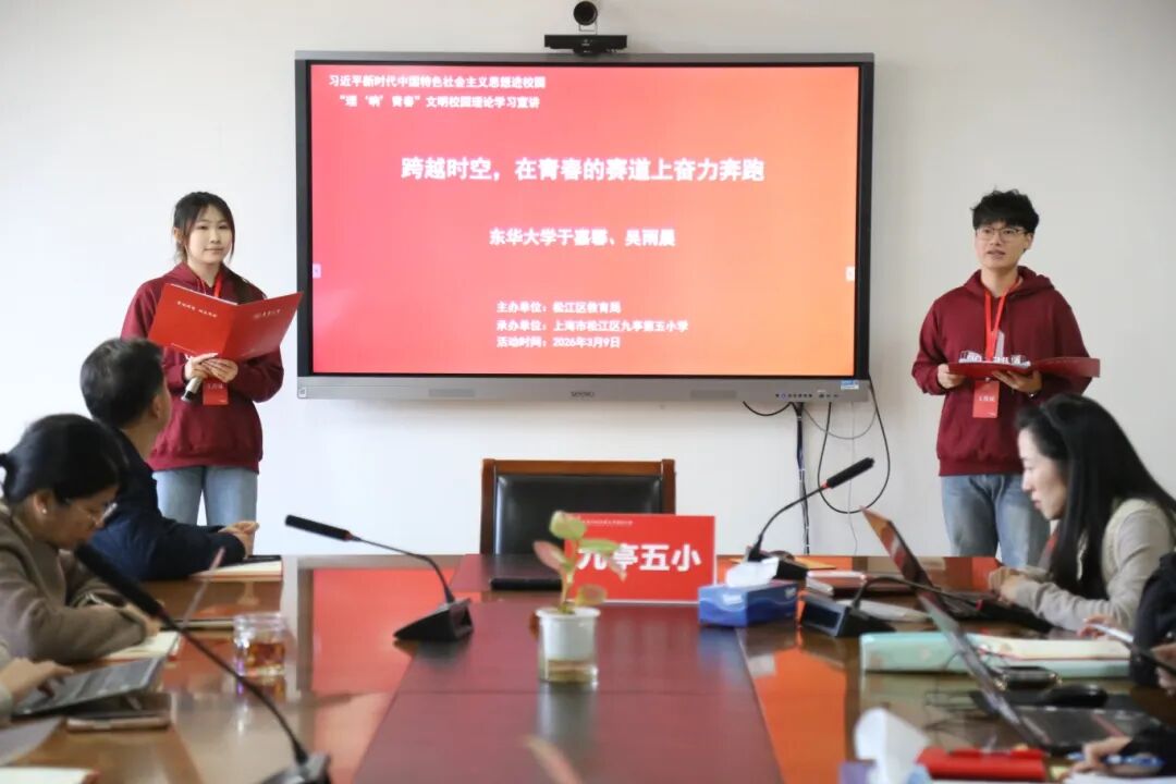 自去年12月首场示范活动在松江二中成功举办以来,“理‘响’青春”文明校园理论学习宣讲在松江火热开展。松江11所高校的大学生组团备课,累计推出22场精品宣讲课程,通过“点单巡讲”形式,先后走进全区20余所中小学校园,以鲜活生动的情景演绎讲述新时代的奋进故事,让党的创新理论在未成年人心中落地生根、葳蕤生长。