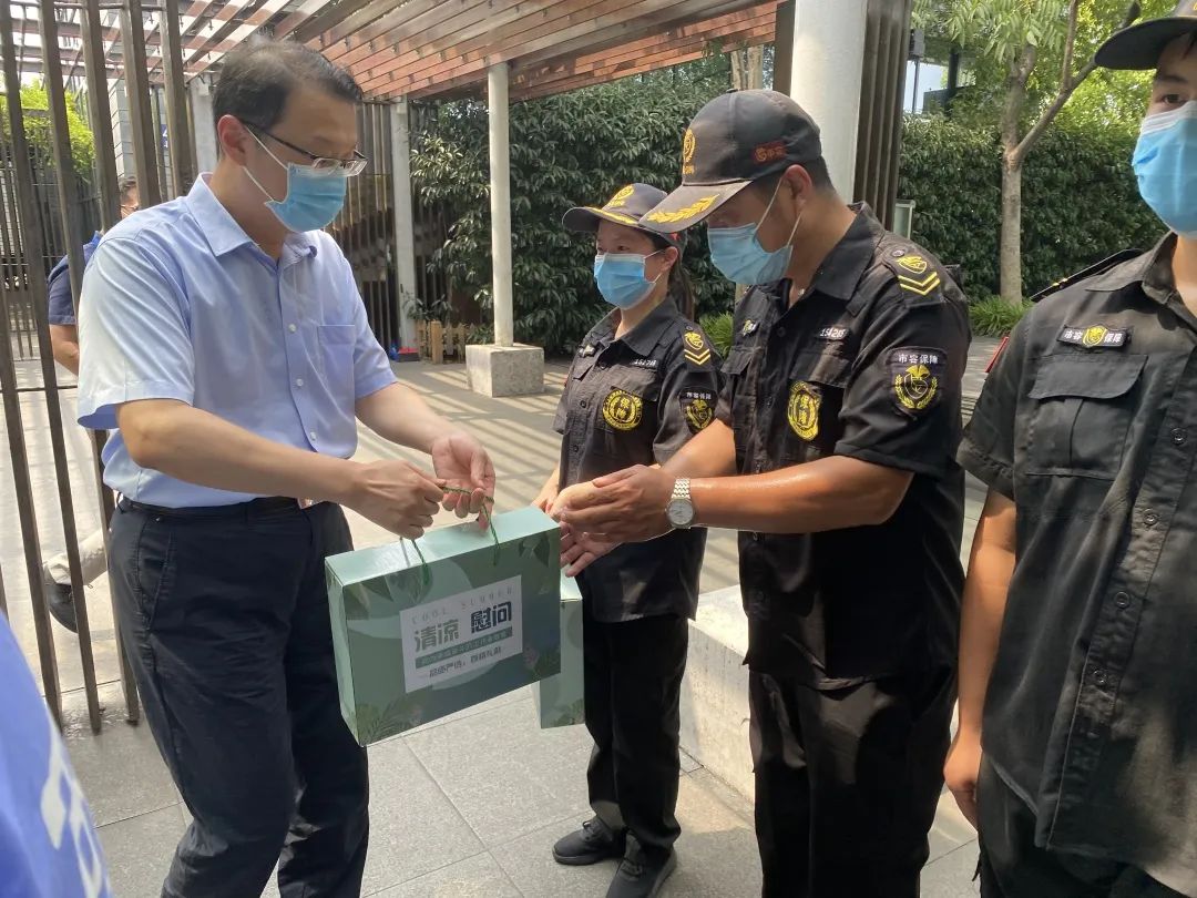 连日来上海持续晴热高温。7月26日,区委常委、宣传部部长潘国力率队先后来到天山路威宁路路口、风铃驿站、新泾镇屈家桥居民区以及北新泾街道新泾五村,慰问坚守在一线的工作人员及社区志愿者。