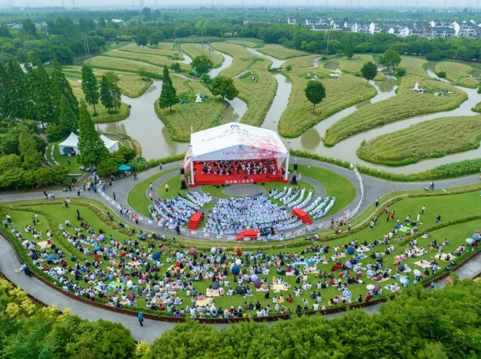 如今,占地1314亩的“花开海上”,早已超越单一的生态公园,成为金山乃至上海重要的新时代文明实践阵地。这里,是生态文明的生动展示窗口,从饱受水患的低洼地蝶变为国家4A级景区,更作为中国案例登上联合国COP15大会舞台,书写着生态修复与可持续发展的典范篇章。行走于四季流转的花海间,文明的滋养无处不在,精心设计的植物造型无声诉说着家国情怀,将红色教育融入自然美景;而田园音乐会悠扬的旋律、青年音乐会的蓬勃朝气、亲子研学活动的欢声笑语,则让艺术与自然共同滋养着访客的心灵。