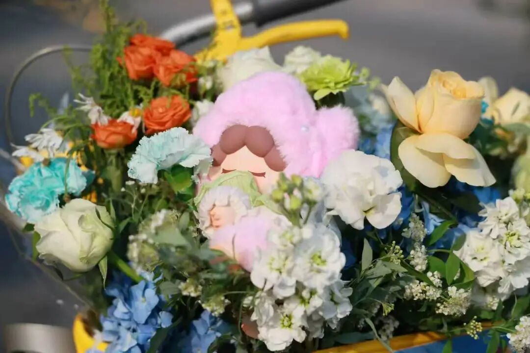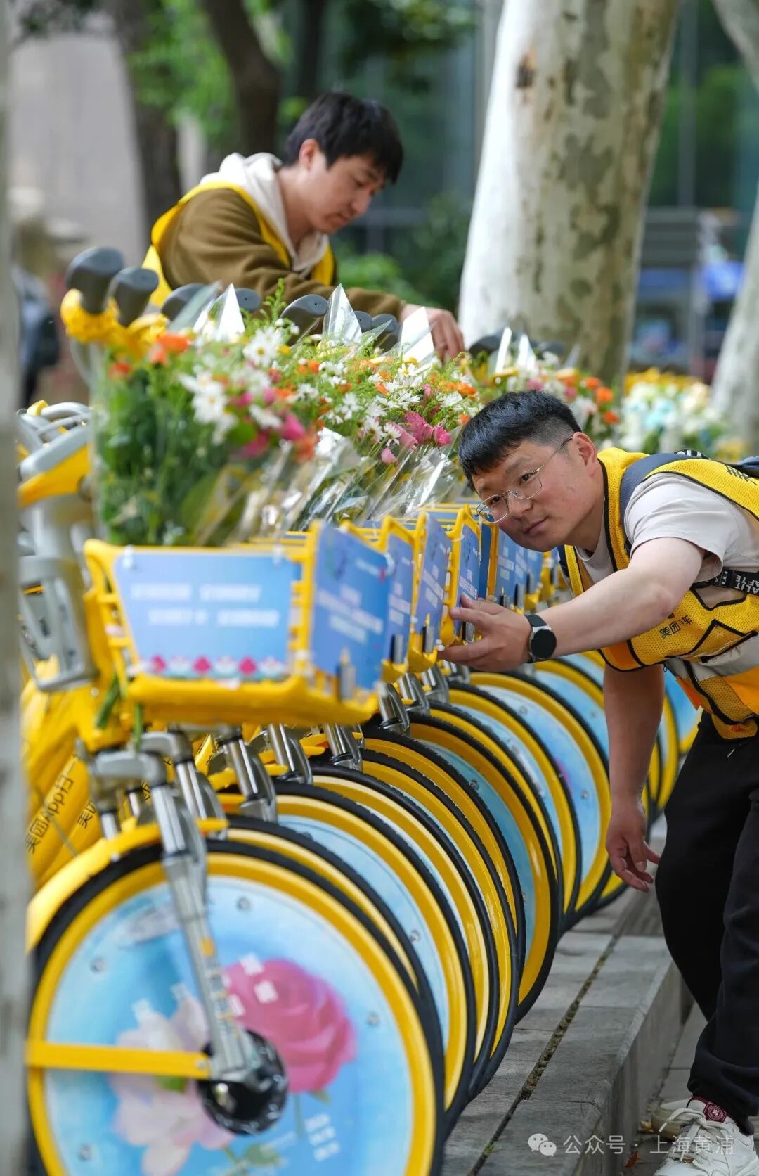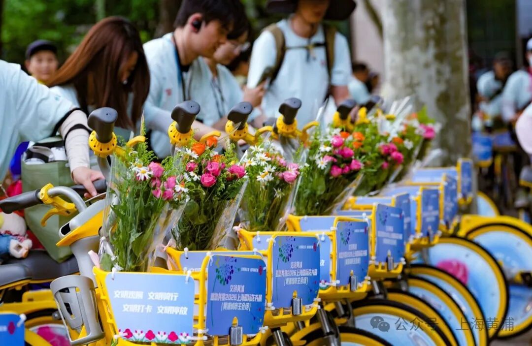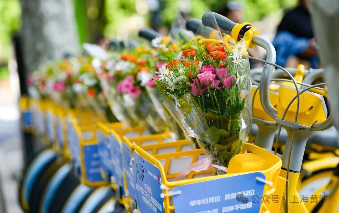 值得一提的是,黄浦区文明办、区绿化市容局、区城管执法局联合美团单车,推出了本次花卉节黄浦城市主会场专属定制的共享单车。车身印有“文明观展、文明打卡、文明骑行、文明停放”等文明引导标语,搭配专属开锁关锁提示语音,传递文明风尚,打造流动的文明风景线。市民游客骑行黄浦,既能高效串联花卉节展区与红色地标,又能以低碳出行践行文明理念,在慢行中触摸城市文明的历史脉动与发展脉络。
