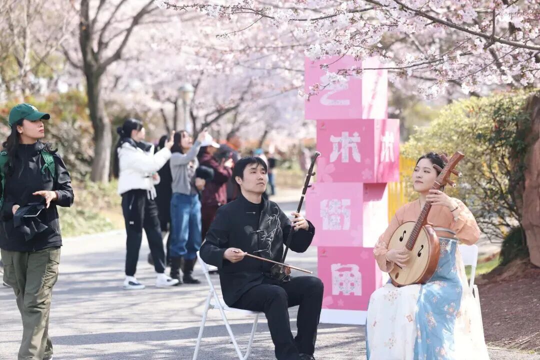 “11”聚焦“文化赋能樱花季”,推出涵盖文艺、阅读、展览等12项内容的文化盛会。比如,特设艺术街角演出,与沪上高校联动的樱花服饰秀、邀请市级非遗江南丝竹演奏者等,在樱花林中带来流动式艺术表演,全方位提升游园体验与参与感;开展 “樱花树下的故事荟”亲子阅读活动以及“花间织梦”非遗插画展、“二十四节气诗书画乐巡展”,推动非遗文化与当代创意、数字科技深度融合,彰显传统文化的时代生命力。