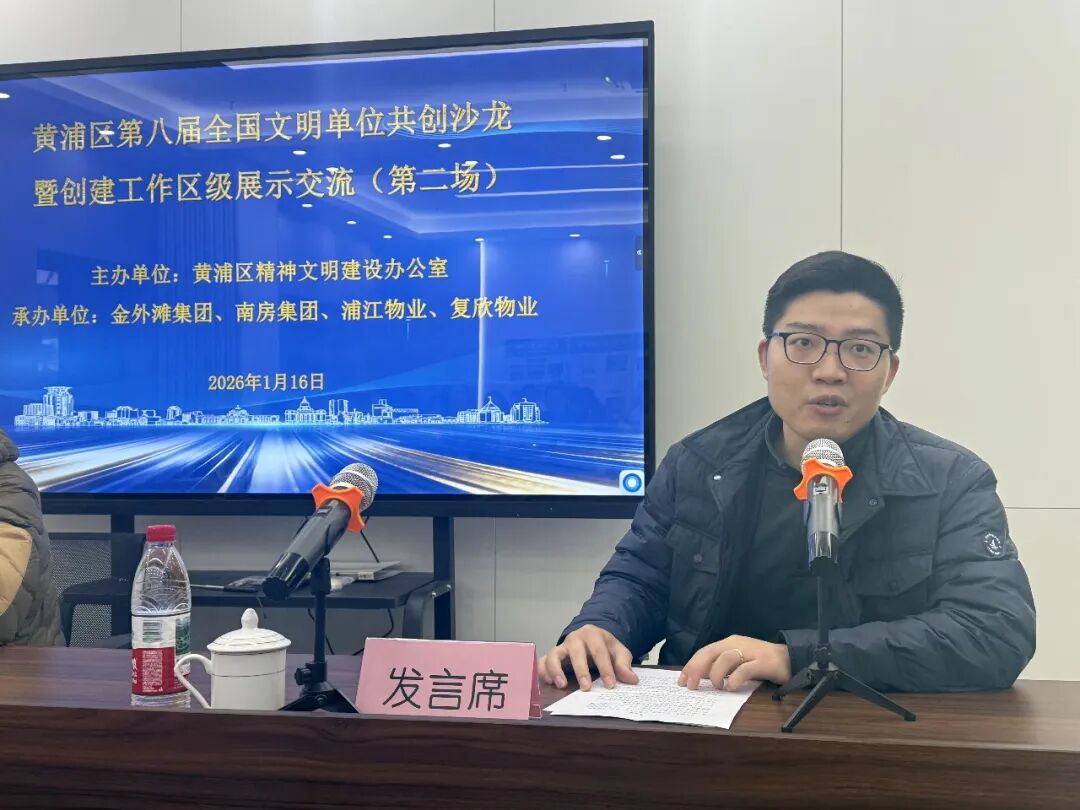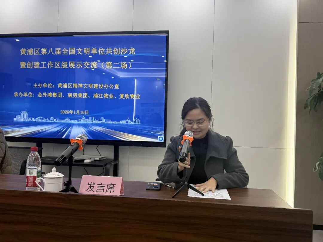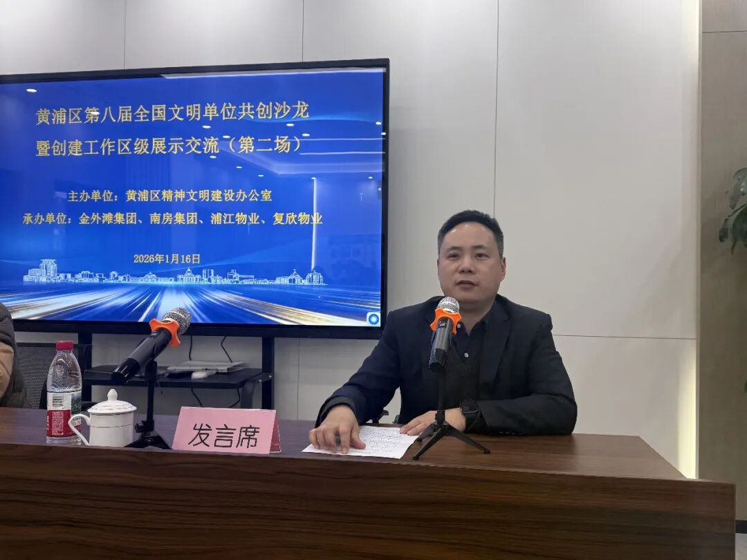 在专题交流中,第七届全国文明单位南房集团、浦江物业和第八届全国文明单位提名单位金外滩集团、复欣物业分别围绕“如何以文明单位创建赋能物业板块业务发展、践行创建为民惠民理念”主题,结合自身工作实际作了经验分享,展示了各单位在创建过程中的特色做法与成效。交流结束后,区文明办对本次沙龙活动进行点评,充分肯定了各单位在创建工作中的积极探索与成效。