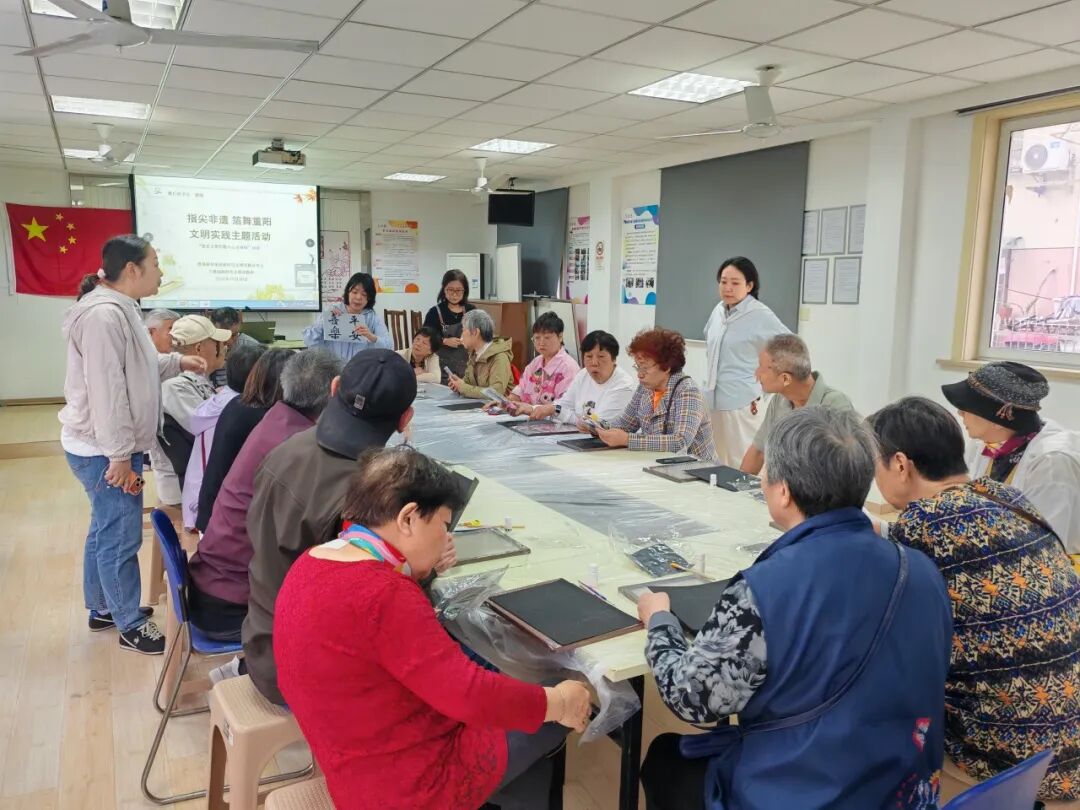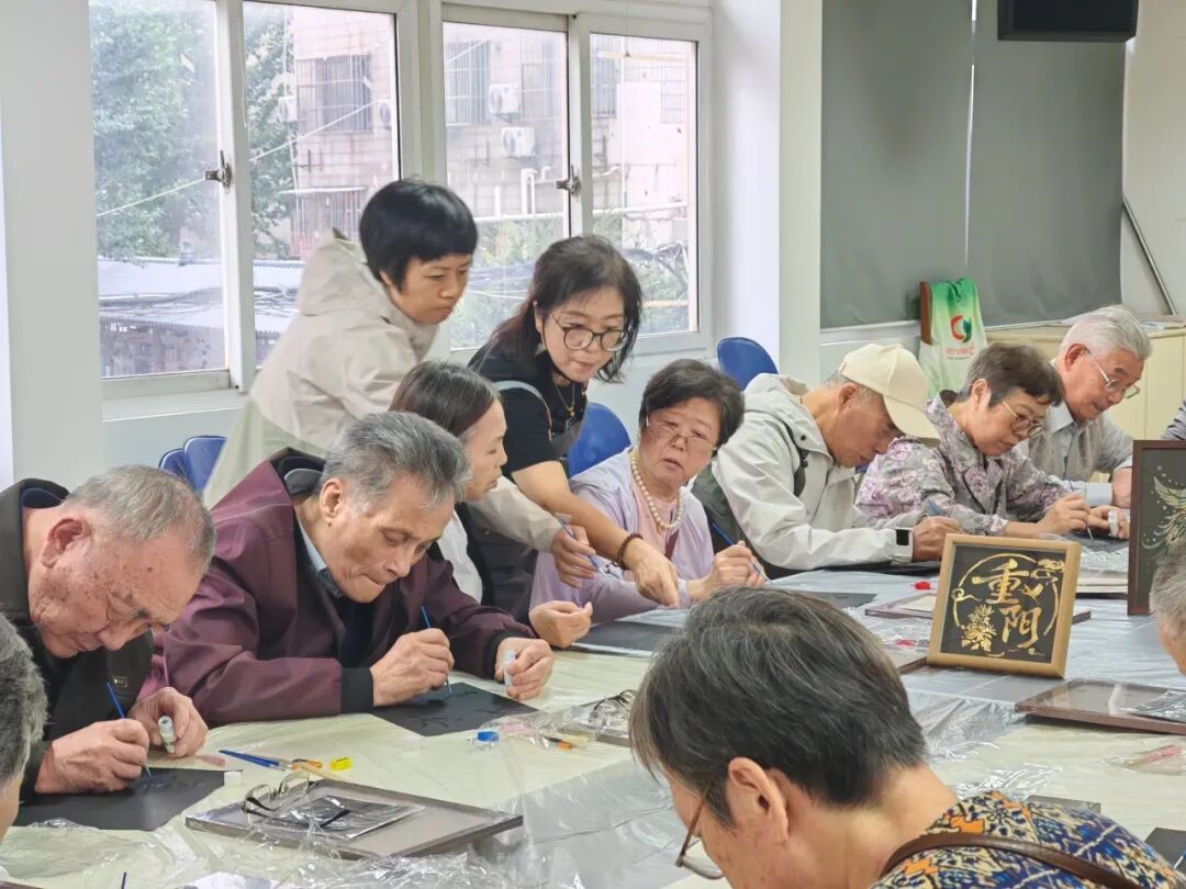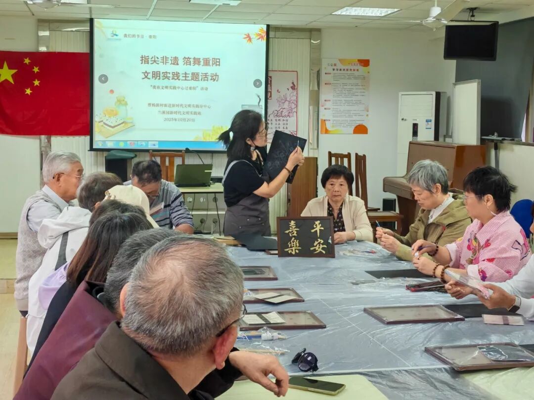 曹杨新村街道新时代文明实践分中心携手兰溪园文明实践站,开展“指尖非遗 箔舞重阳”“我在文明实践中心过重阳”活动。现场,众人化身“非遗匠人”,在非遗老师指引下用心创作,每幅作品都饱含对生活的期许与对长辈的深情。活动让居民在沉浸式体验中,感受文化魅力,传承重阳美德。