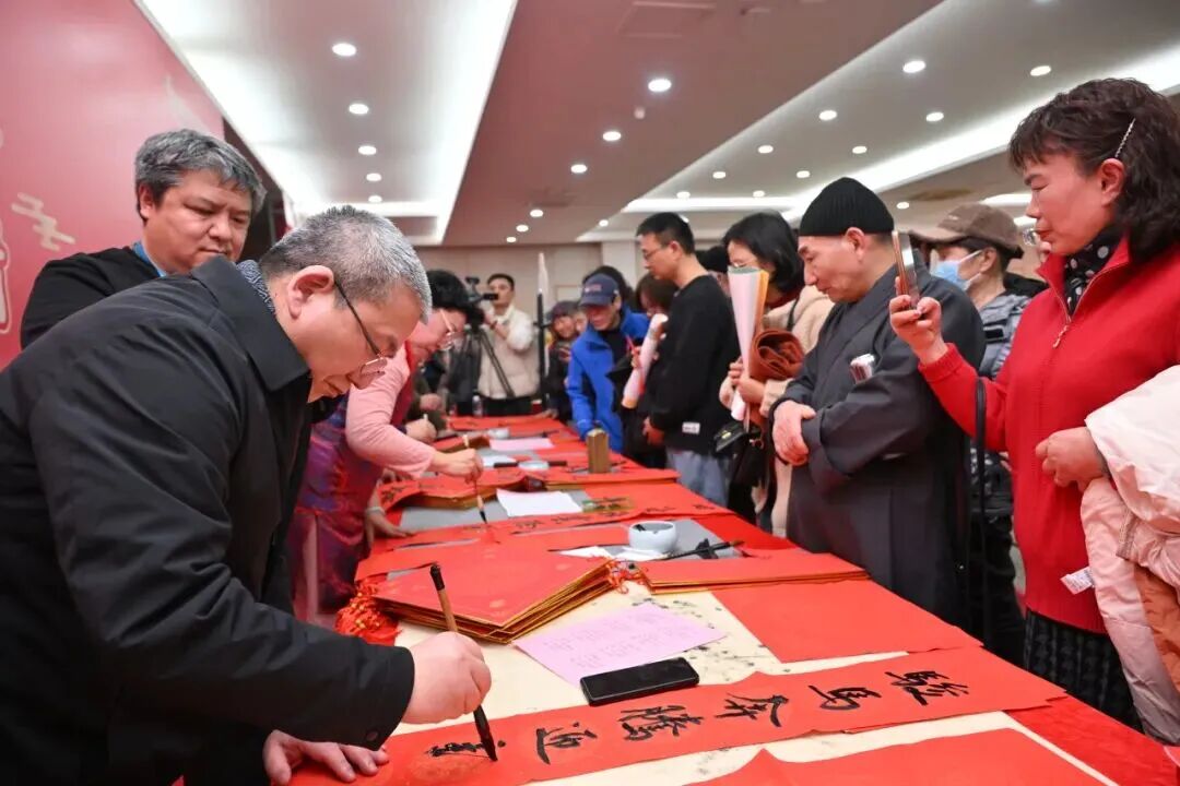 现场通过视频回顾了“墨暖千家 福至殷行”送春联送福活动的温暖画面。活动期间,街道组织书法家与志愿者走进社区,将新春祝福送至辖区百余户家庭。一副副红联书写睦邻真情,一张张福字传递新春暖意,在翰墨交融中赓续千年文脉,在社区烟火里凝聚时代温情。居民们收到祝福时的真挚笑容,书写交流中的亲切对话,共同绘就了这个冬日里最动人的社区画卷。