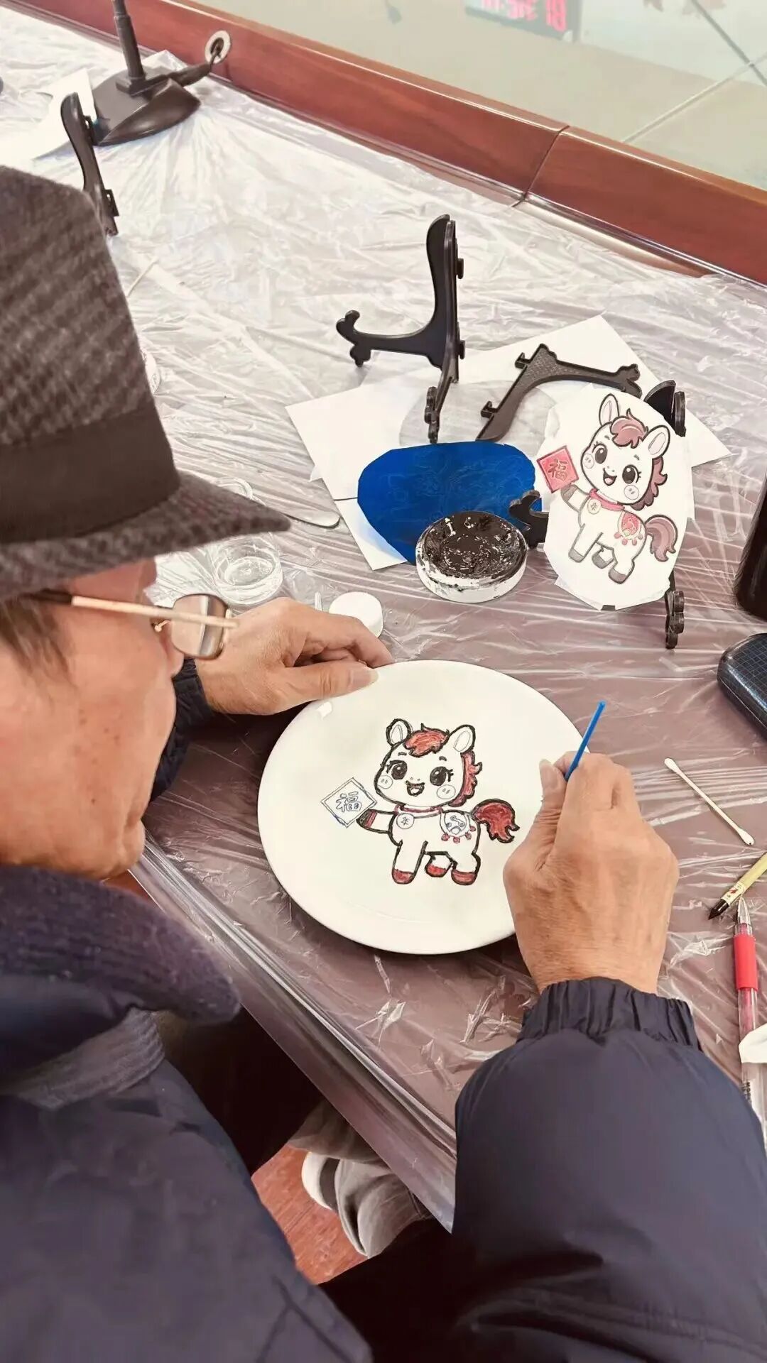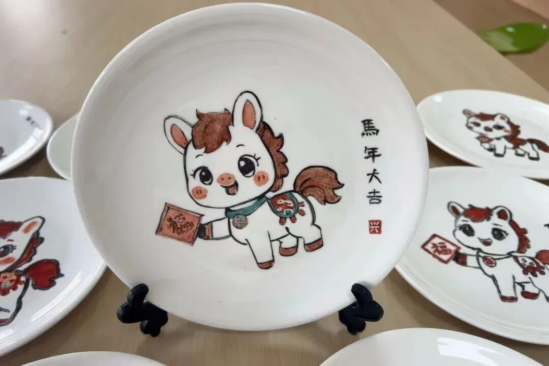 本次活动还特邀杨浦区非遗瓷器彩绘项目负责人王继红,精心打造“马年”主题沉浸式体验课程,带领社区大小朋友们共同创作新春瓷绘作品。大家在亲手创作中感受非遗传统文化的独特魅力,指尖的色彩历经窑变焕发新生,秀丽雅致的瓷面也被赋予美好祝福。