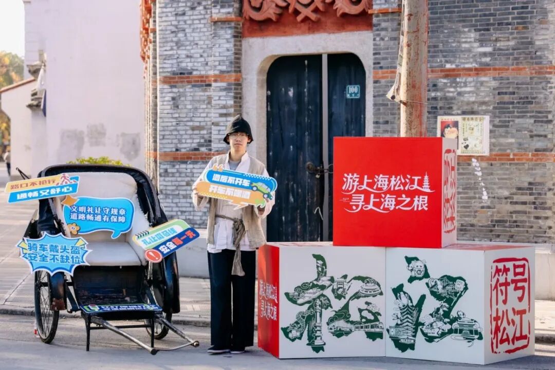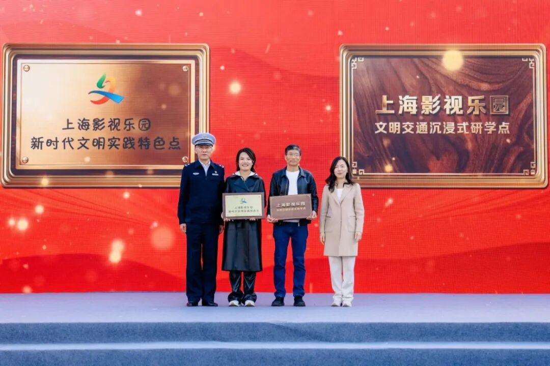 报童肩背报纸袋,沿街叫卖“松江文明快报”;黄包车车夫停靠在路边,与游客现场对答文明交通小知识;“铛铛车”停靠站台,邀请市民签名承诺“文明出行”并登车共赏民国街景……会场周边,以民国风情的文明交通情景互动秀和融入文旅商体展元素的“快闪集市・文明交通风采展”同步拉开序幕,吸引了众多游客驻足参与,流连不已。本次主题活动上,上海影视乐园正式揭牌成为“文明交通沉浸式研学点”和“文明实践特色点”。后续,这里将进一步发挥园区场景、技术与特技等文旅资源优势,打造一台传播交通文明、讲述上海电影故事的创新实践课堂,让文明出行观念在沉浸体验中深入人心、成为自觉。