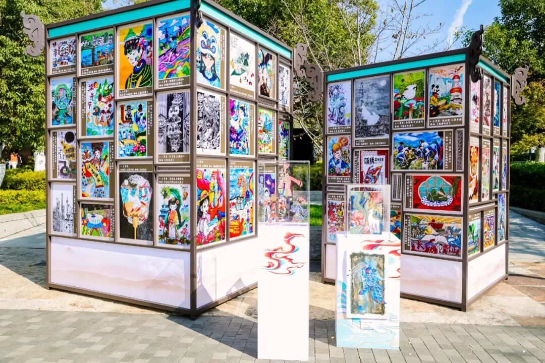 蟠龙水集周边,数百件绘画、书法、摄影等优秀作品错落陈列,这是来自三省一市的数百名青少年的匠心之作。本届活动持续获得长三角地区青少年的热烈追捧,地域覆盖广度与参与热情再创新高。有《虎跃门庭间》作品对传统虎文化的青春演绎,也有《跨越千年的对话》对时代发展的影像记录,更有《叠韵蓝凰·非遗凝萃》对非遗技艺的创新传承——这些作品不仅是长三角青少年精神风貌的缩影,更彰显着年轻一代对中华优秀传统文化的认同与热爱,实现文化育人的提升。