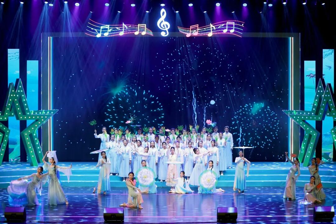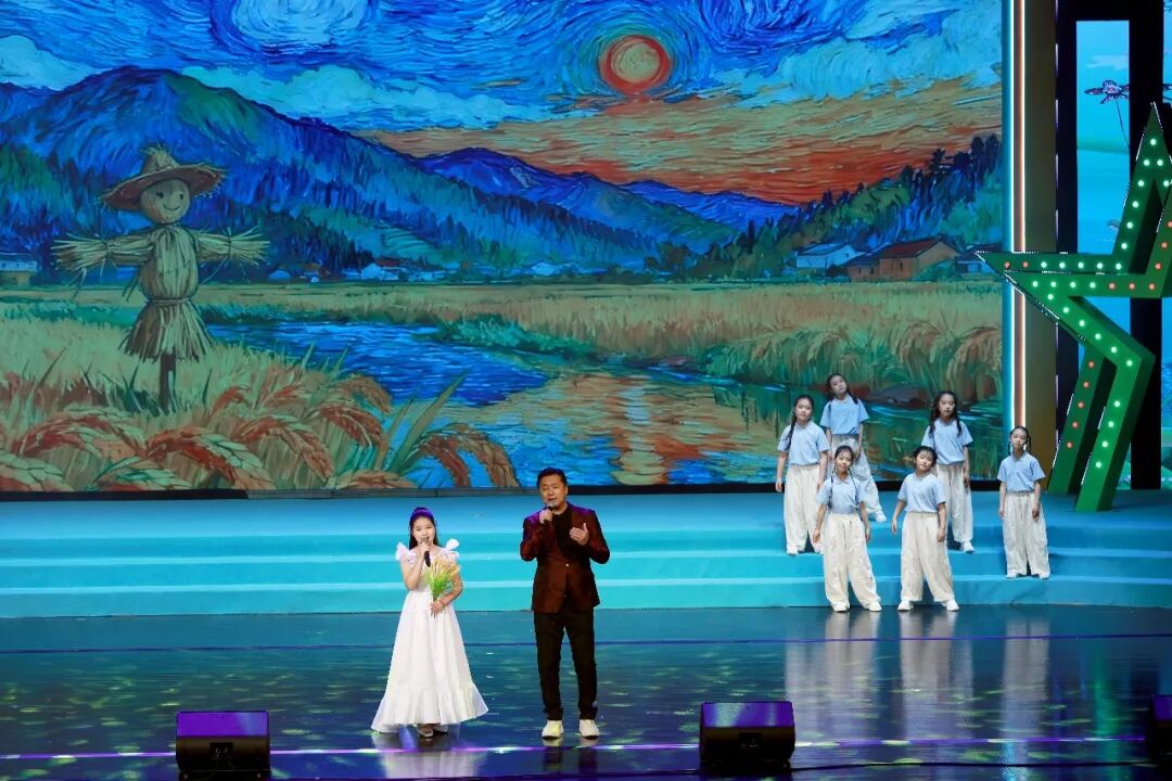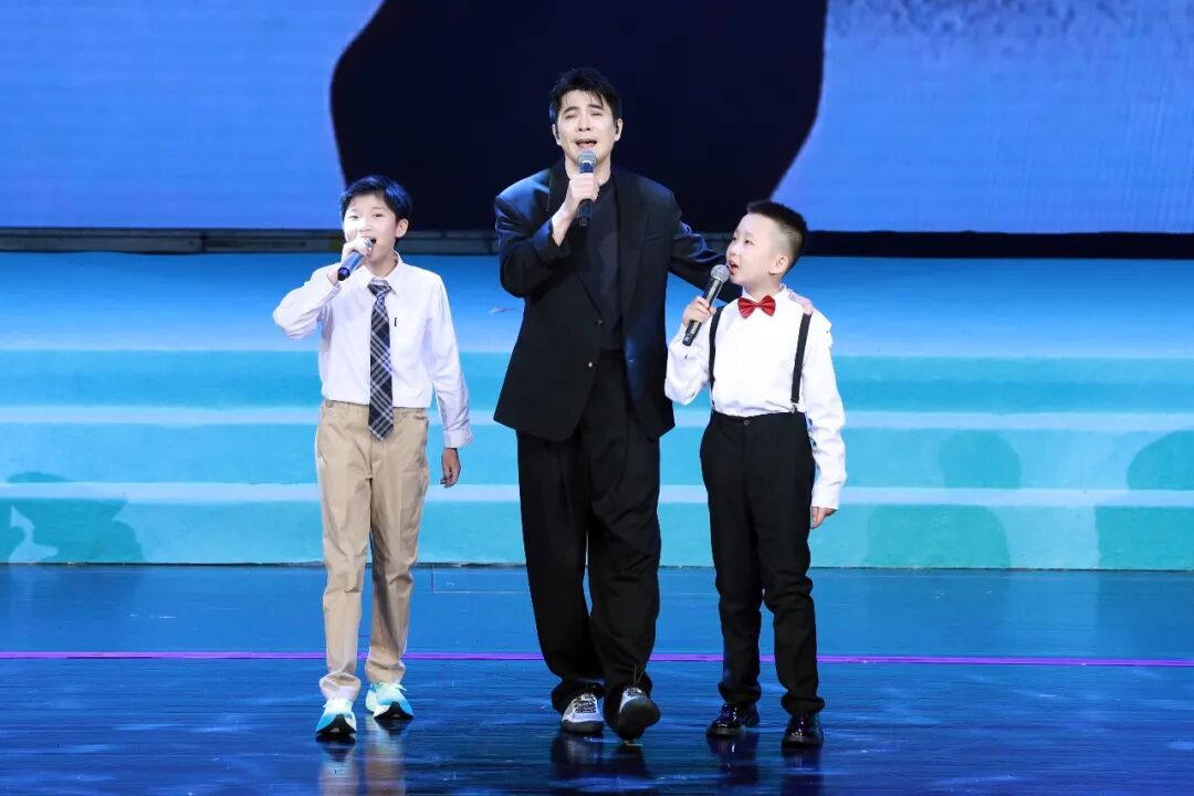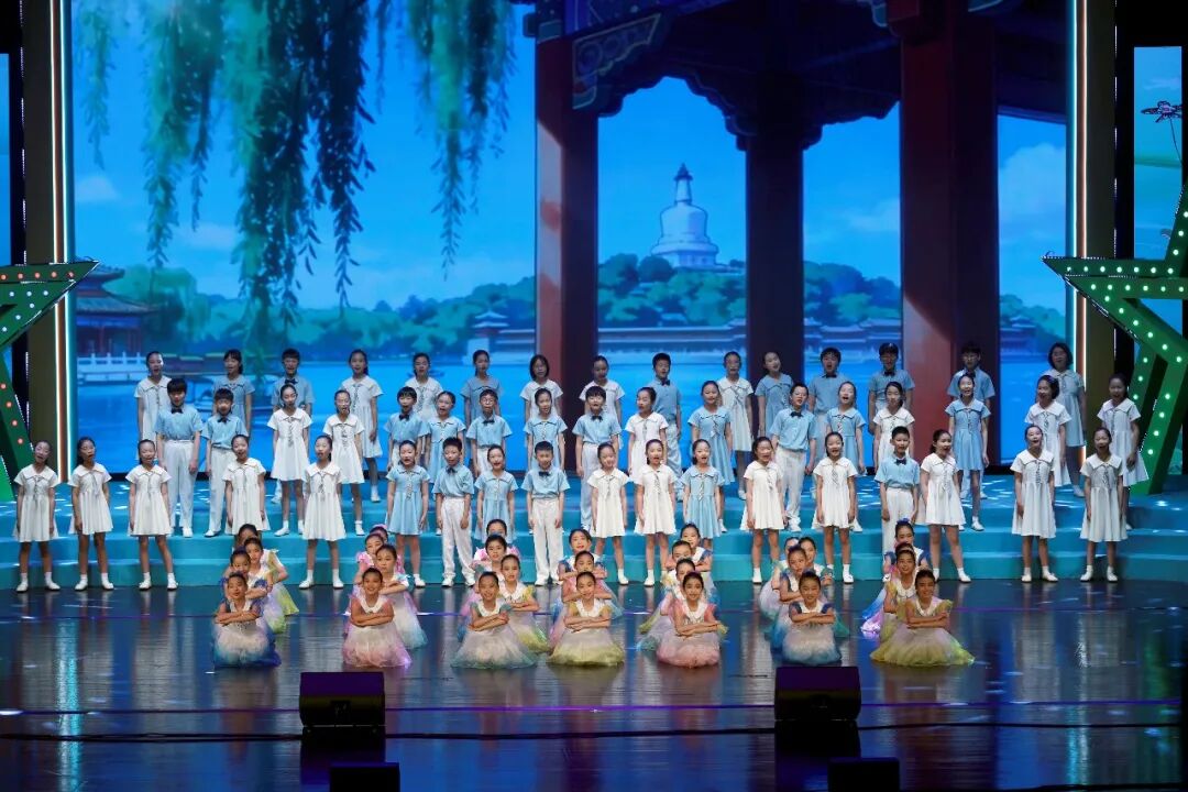 《春风跑过古城门》描绘了一幅老北京的风情画,红砖绿瓦下滋生出热闹的市井生活和丰富的民俗文化。《星星连心一家亲》的舞台上,身着不同民族服饰的孩子们欢聚一堂,用音乐交流心声、传递情感,呼吁团结友爱的一家亲。《当我们放声歌唱》节奏欢快,以歌咏志,唱响了新时代少年儿童的蓬勃朝气,展现了饱满的精神面貌。《饮湖上初晴后雨》中,孩子们以古韵新声演绎诗词之美,用稚嫩童声传唱经典词曲。《有我》旋律昂扬、歌声嘹亮,展现了新时代少年的担当。