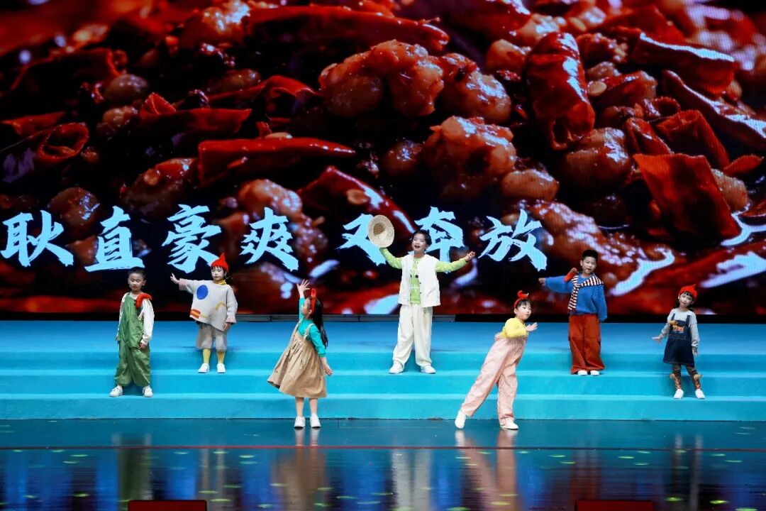 “童心咏春潮”篇章带来了多元多彩的舞台呈现。方言歌曲联唱《辣歌谣》《yammy yammy就是好吃》《小小小骑士》《蹦蹦跳跳》展现了鲜明的地域特色和生活气息——《辣歌谣》里热辣滚烫的成都,《yammy yammy就是好吃》里摩登海派的上海,《小小小骑士》用粤语演绎的骑士精神,《蹦蹦跳跳》里纯真无忧的孩童时光,共同串联起不同地域的文化魅力。