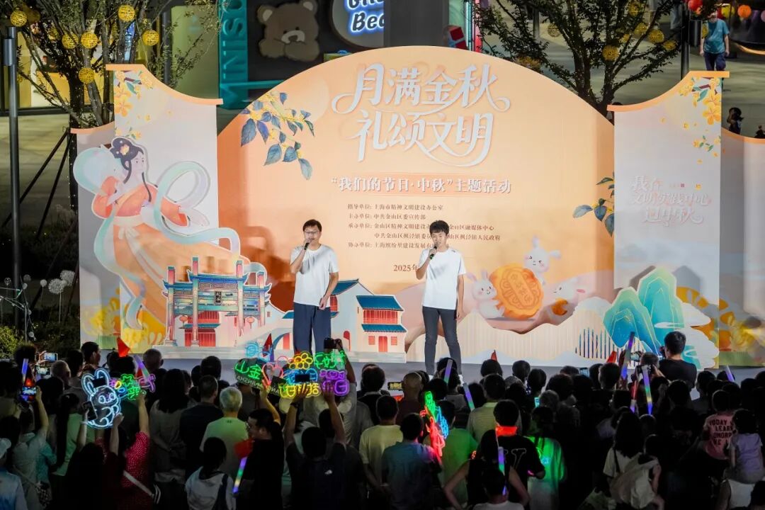 “灯火万家·山河如愿”中秋主题晚会精彩上演。来自文明校园和青少年活动中心的学生们带来纯净童声合唱,展现青春活力;项目建设者以深情独唱表达家国情怀,文艺志愿者用专业演出致敬平凡奉献者。民乐演奏勾勒唯美江南月夜,互动环节点燃现场气氛。