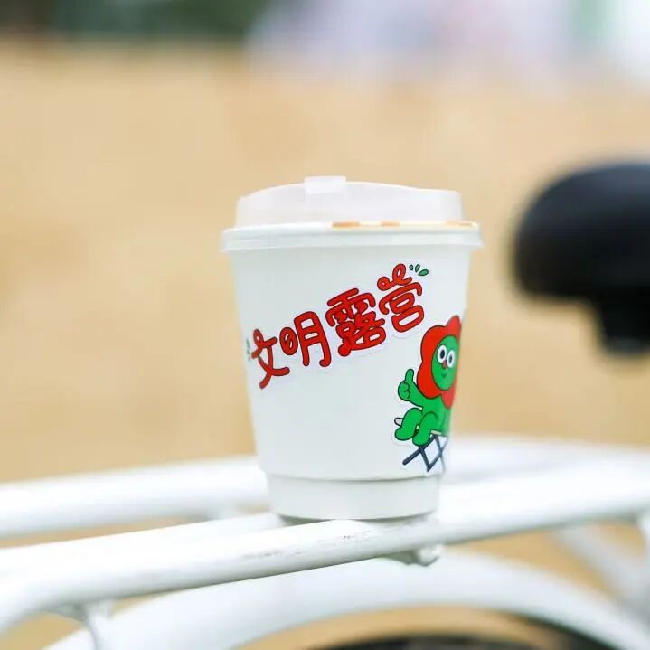 本届露营节还携手参展商COFFEE CUBE,在咖啡杯上贴上文明露营小标签。这枚小小的标签,既是对参与者的温馨提醒,更是一份可传递的责任。当居民手捧醇香咖啡,看到杯身温馨提示时,不妨将这份理念融入露营计划。让每一杯咖啡,都成为文明露营的“小小宣传员”。