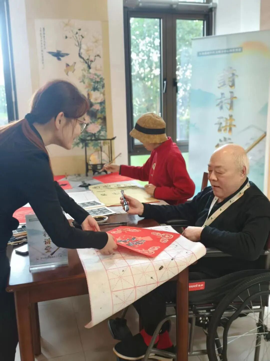 宝山区道德模范苏金成工作室的书法活动吸引了各个年龄段的居民前来参与。新年送福、重阳送福……还有日常的书法教学。大家在笔墨间感受书法的美,还通过书法作品传递祝福,让“书香满镇、文明传家”的氛围更浓。