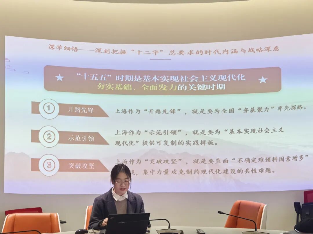 为深入学习贯彻习近平新时代中国特色社会主义思想,推动党的创新理论深入人心,特别是深入城市经济活跃的“竖起来的社区”,1月16日,北新泾街道邀请上海交通大学“声入人心”学生理论宣讲团成员做题为《“开路先锋、示范引领、突破攻坚”——上海在中国式现代化新征程中的角色和担当》的理论宣讲,为北新泾街道楼宇党支部以及联新第一街区党支部的党员带来了一堂紧扣时代脉搏、贴近城市发展的思想课。