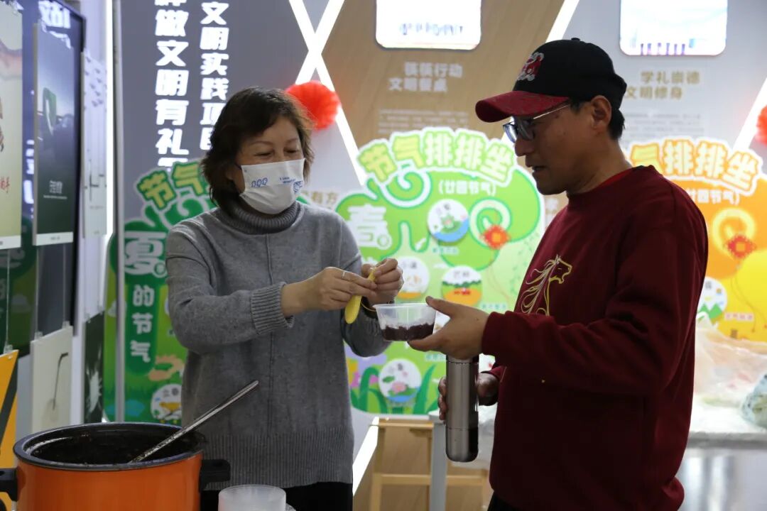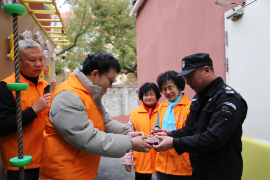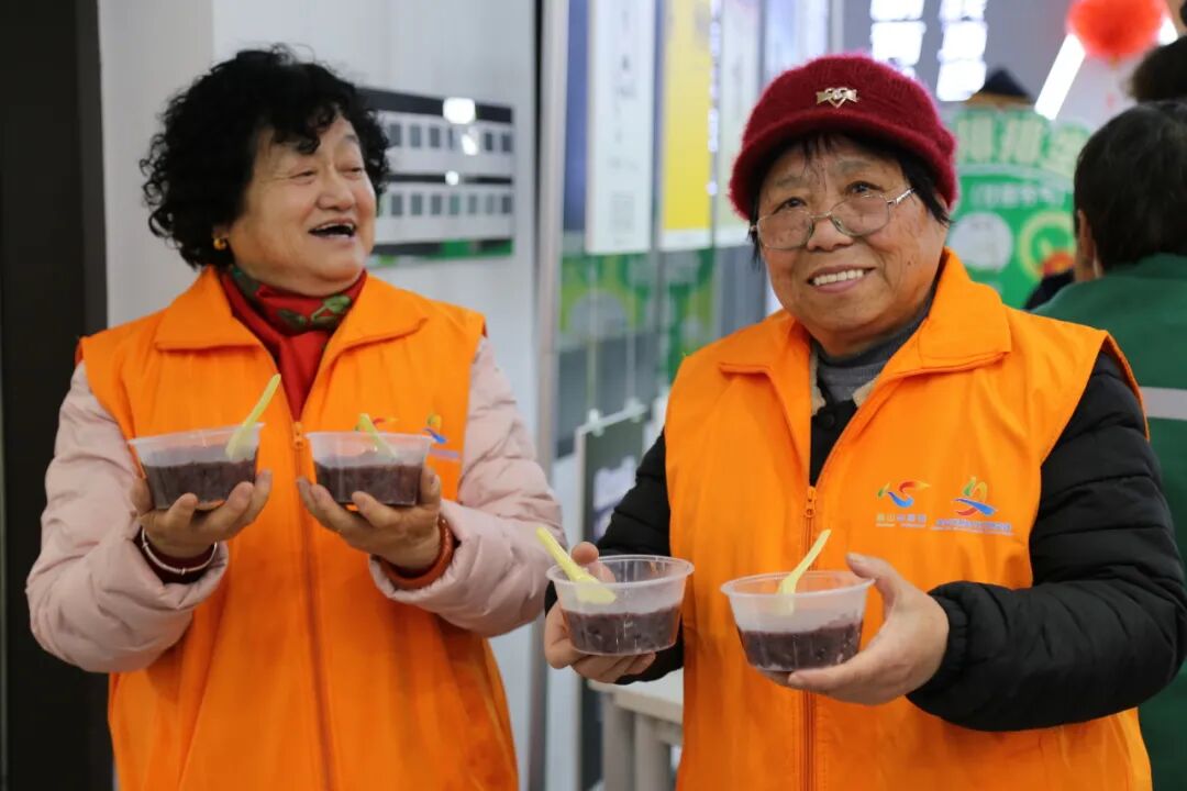 随后的“粥暖人心·文明践行”环节,金山好人代表将亲手熬煮、软糯香甜的腊八粥送给现场居民与志愿者,一碗碗热粥暖胃又暖心,不仅传递着传统美食的醇香,更以实际行动践行着邻里互助的文明理念,让腊八节的传统习俗变得有温度、有情怀。
