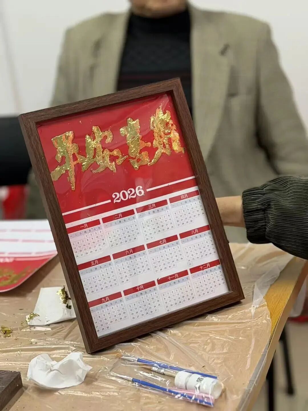汇枫景苑新时代文明实践站携手尤旦口腔,共同举办“指尖添年味,日历记新章”金箔日历手工活动。居民们欢聚一堂,以巧手绘制年历,用金箔点缀祝福。活动现场,彩纸金箔相映生辉,大家互相交流、笑语不断。一份份亲手制作的日历,不仅承载着对新年的期盼,更在协作互动中加深了邻里情谊,让传统手工艺的温度,化为冬日里最温暖的社区记忆。