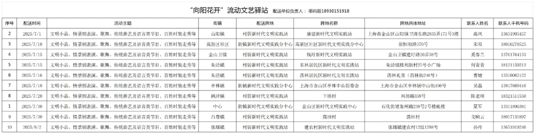 为深入践行人民城市重要理念,助力上海建设习近平文化思想最佳实践地,持续推动文明城市创建向城市文明建设拓展,不断提升新时代文明实践宣传群众、教育群众、引领群众、服务群众“最后一公里”的服务能级,持续聚焦提高市民群众的幸福感和获得感。金山区各级新时代文明实践阵地每周开展丰富多彩、喜闻乐见的“人民城市 文明风采”系列群众性主题活动。以下是2025年7月份活动预告,诚邀您的参与,在活动中感悟文明力量,做文明实践的践行者、美好生活的创造者!