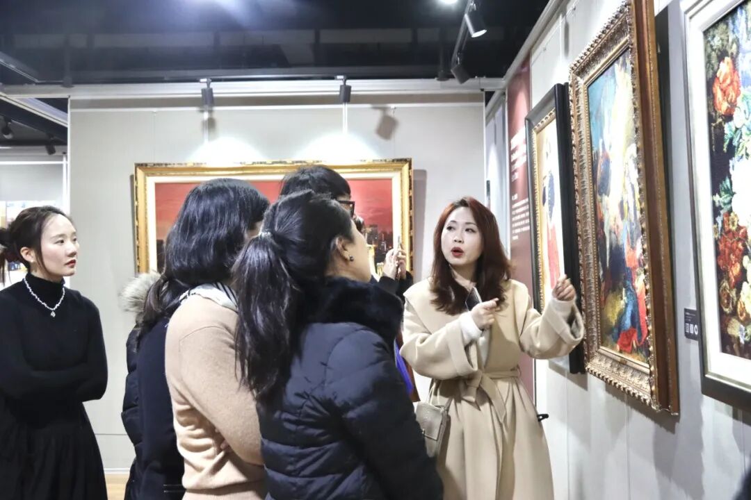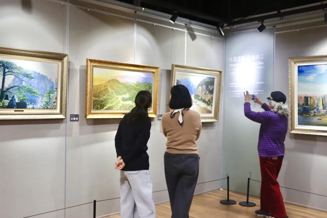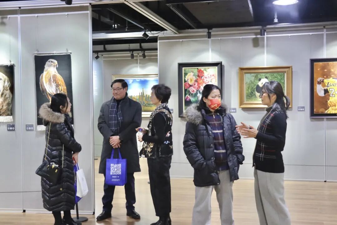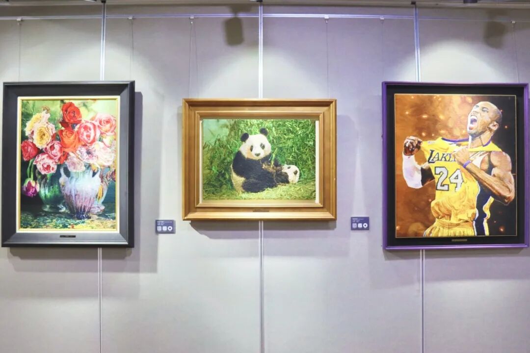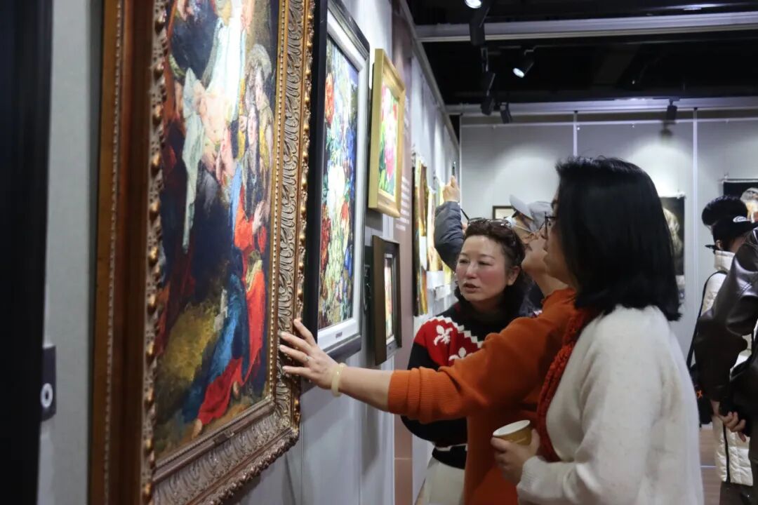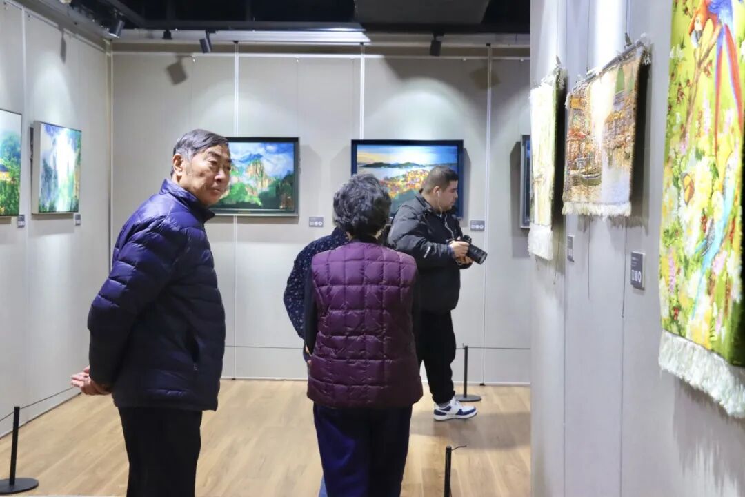 嘉宾们在一幅幅美丽的绒绣作品前驻足,或静静品味其中的针法、明暗与色彩,或与同伴探讨绒绣艺术对美的创意和表达。