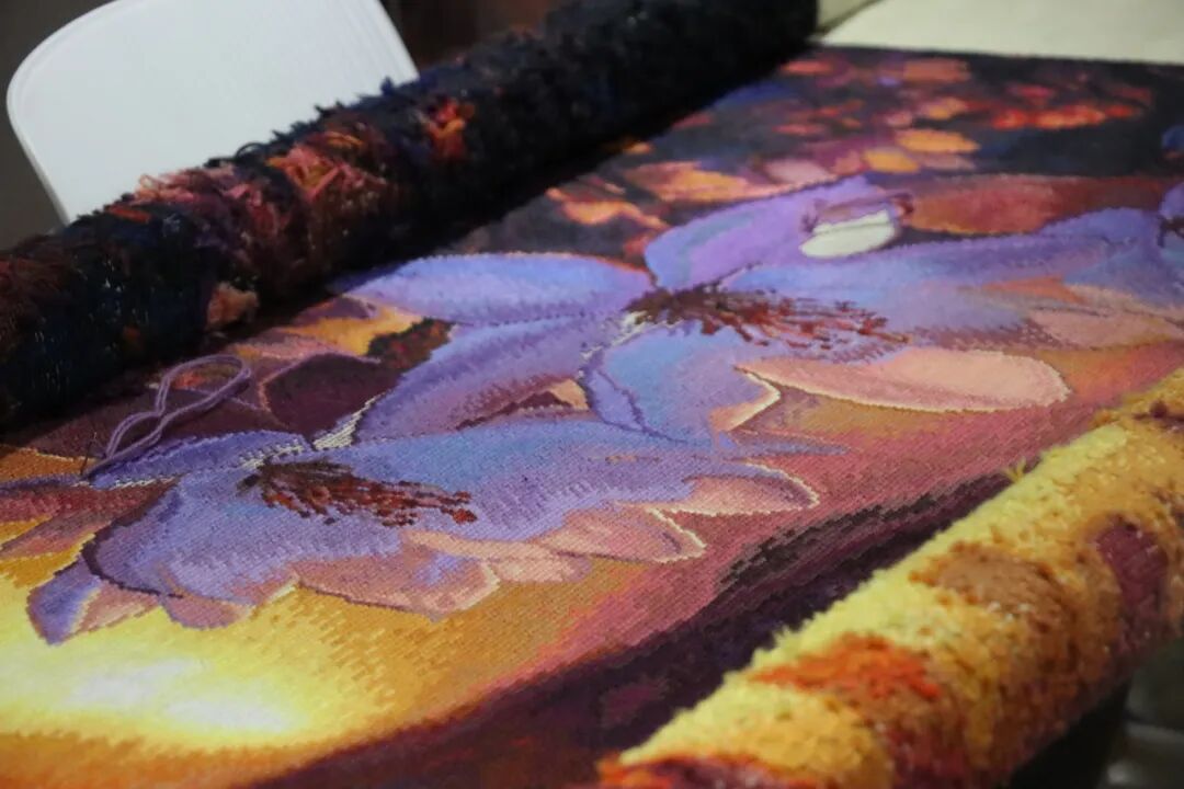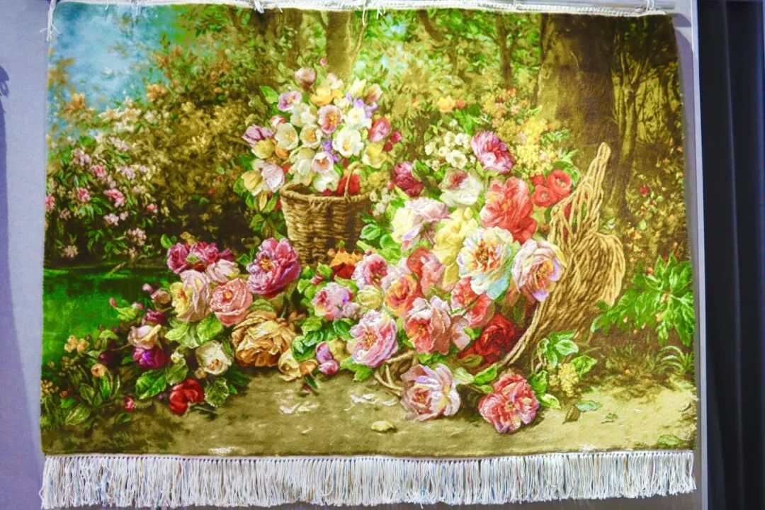 活动现场展出了精美的中国绒绣与伊朗大不里士波斯毯作品,包炎辉老师向到场嘉宾一一介绍作品中的配色、选线、劈线、绣制技巧,以专业的眼光剖析跨越文明的绒绣作品各具特色的艺术价值与“美美与共”的文化内涵。