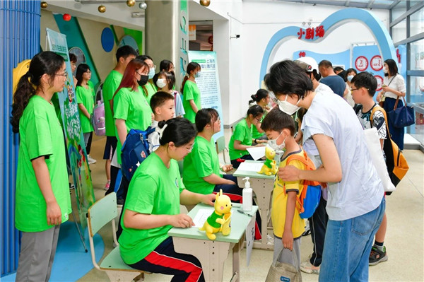 今年的徐汇区小学生爱心暑托班共招募志愿者和工作人员逾1200人次,其中大学生志愿者占比28.82%,高中生志愿者占比63.75%。志愿者们在点位负责人及班主任老师的带领下,积极参与爱心护导、秩序维护、签到签退、餐食分发、课程协助,为暑托班有序开展做出了积极贡献。