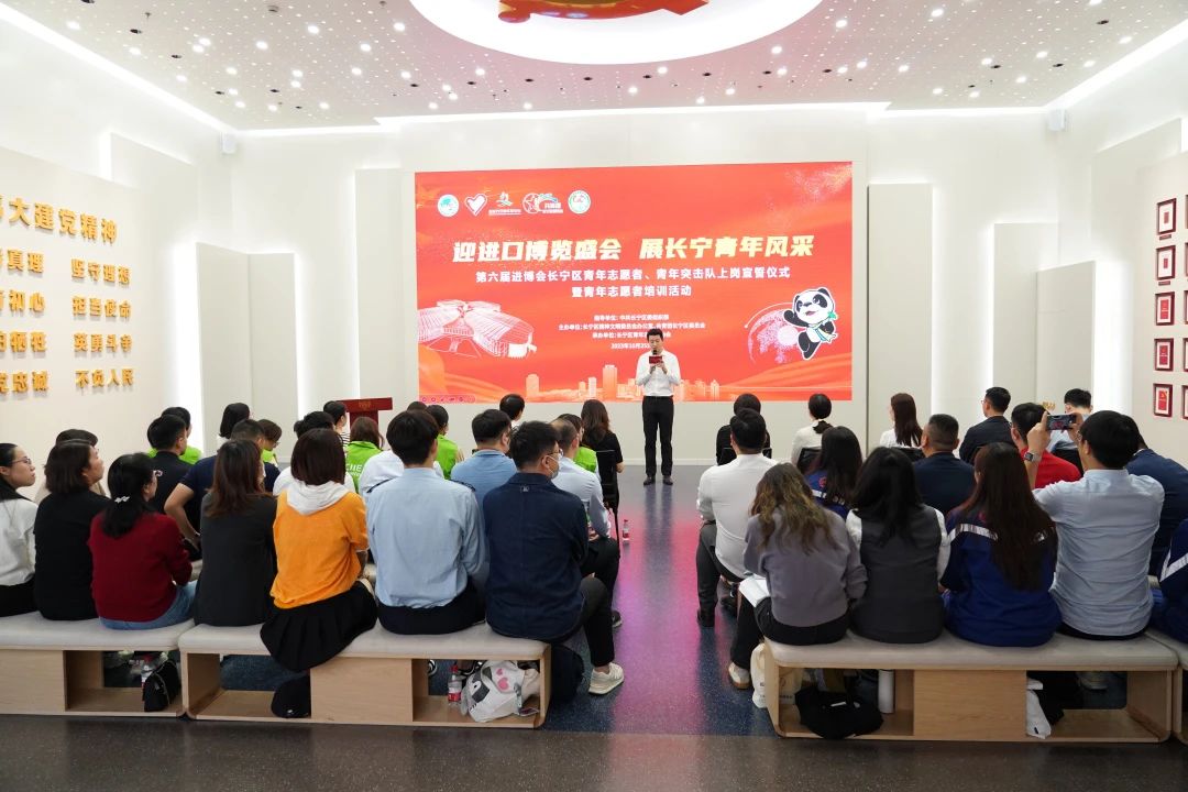 10月25日下午,在进博会进入10天倒计时之际,由中共长宁区委组织部指导、长宁区精神文明建设委员会办公室和共青团长宁区委员会联合主办的“迎进口博览盛会 展长宁青年风采”第六届进博会长宁区青年志愿者、青年突击队上岗宣誓仪式暨青年志愿者培训活动在凝聚力工程博物馆举行。